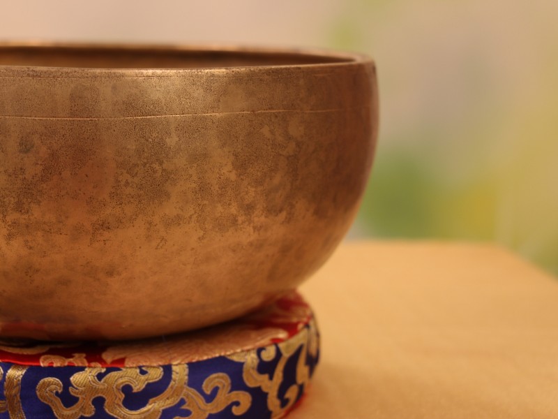 - Tibetan silk-brocade Singing Bowl Cushion (shown above) in your choice of Tibetan Red, Royal Blue, or Plum.